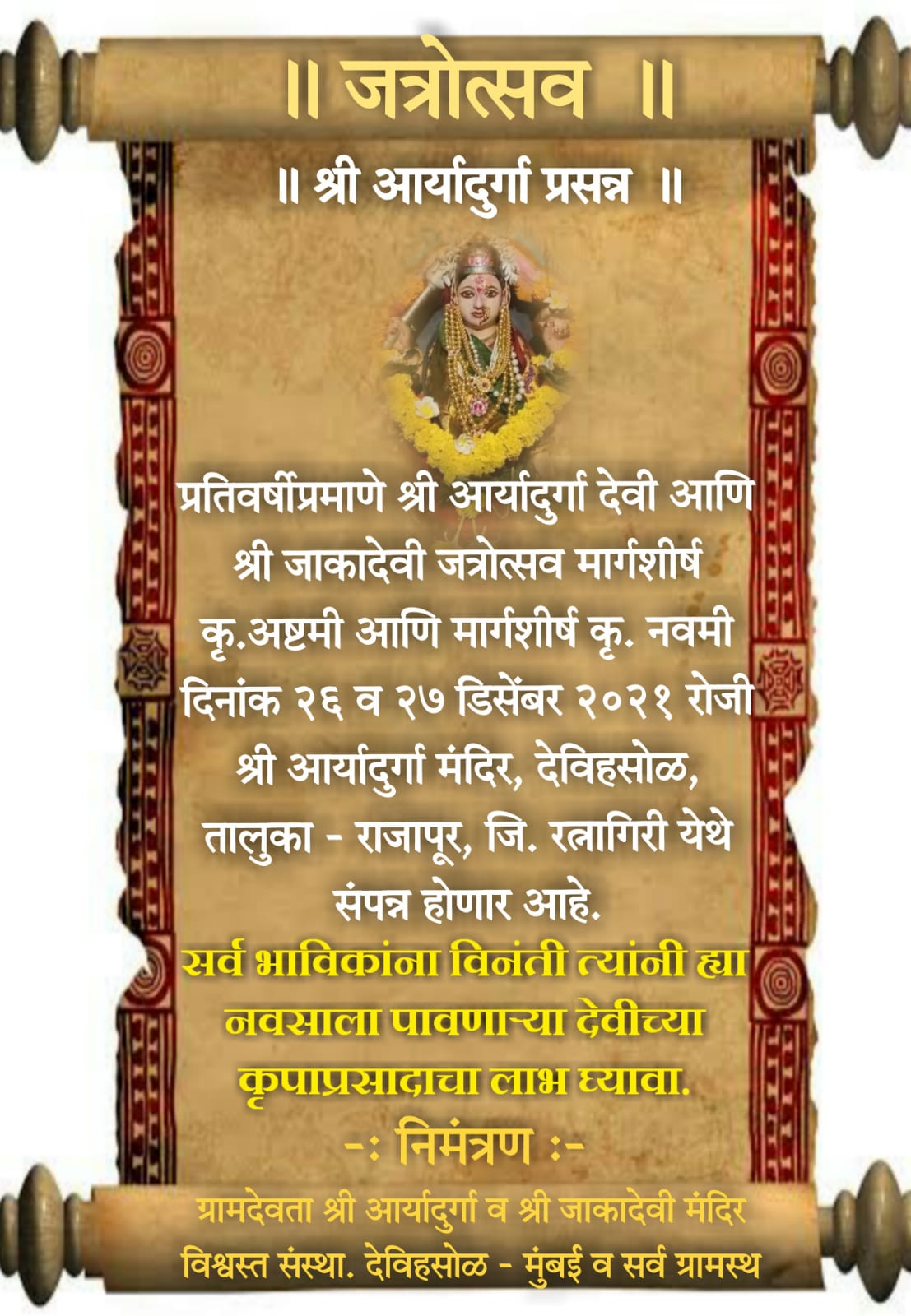 मार्गशिर्ष महिन्यातील प्रितपदेच्या दिवशी हा उत्सव होतो. सकाळी मंडळी मंदीरात सडा समार्जन करुन रंगवल्याही शोभा वाढवून आणली जाते. सर्व देवतांची रुपे स्वच्छ करुन लावली जातात. देवता सजविल्या जातात. पुचा अर्चा, नैवेद्य केला जातो. सायंकाळी गुरव गावातील प्रत्येकाच्या घरी दिवा घेवून जातात.